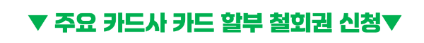 아래에 주요 카드사들의 카드 할부 철회권에 대해서 신청할 수 있는 페이지로 넘어갈 수 도 있도록 연결해 두었으니 필요하신 분들은 꼭 확인해 보세요.