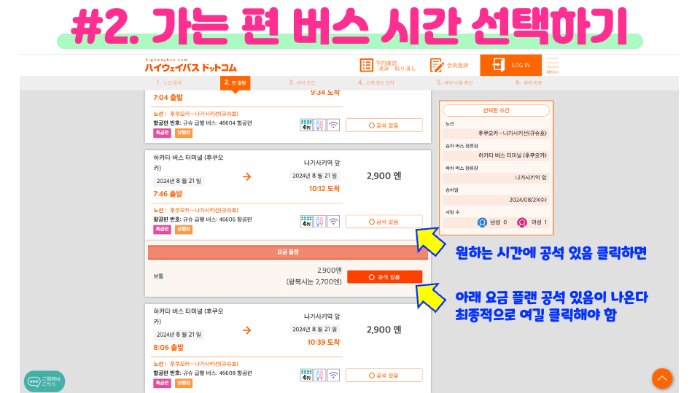 3. 후쿠오카에서 나가사키 가는 버스 좌석 지정 및 왕복 • 편도 선택하기